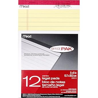 12pk Mead 5x8 Yellow Legal Pad