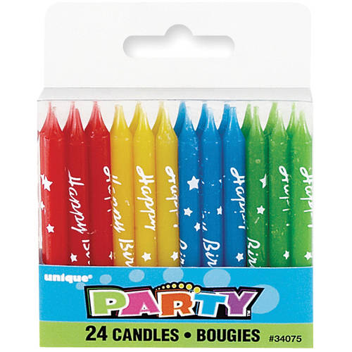 > Unique Happy Birthday Script Candles 2.5in 24ct