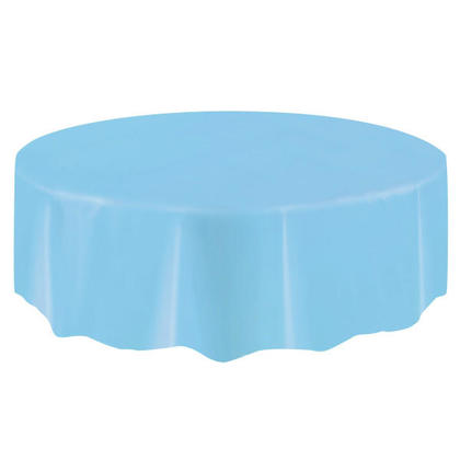 > Unique Powder Blue Solid Round Plastic Table Cover 84in