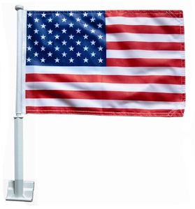 11" x 18", US Car Flag, 100% Polyester, Attaches To The Window Of Your Car.
