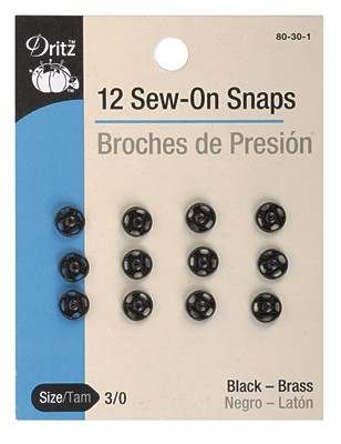 Dritz - Sew-On Snaps Black Sz 3/0 12 Count.