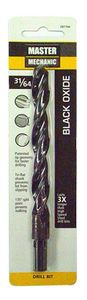 Master Mechanic, 31/64" x 5-7/8", High Speed Steel Black Oxide Drill Bit, Jobber Length, 3/8" Shank, 135 Point Angle With 4 Cutting Edges Eliminates Walking & Provides Fast Penetration, Black Oxide Tempering Treatment Reduces Frictional Resistance & Improves Chip Flow, Recommended For Wood, Plastic, Wallboard, Plywood, Soft Metals, Aluminum, Brass & Bronze, For Occasional Use In Stainless Steel & Other Hard Metals, Carded.